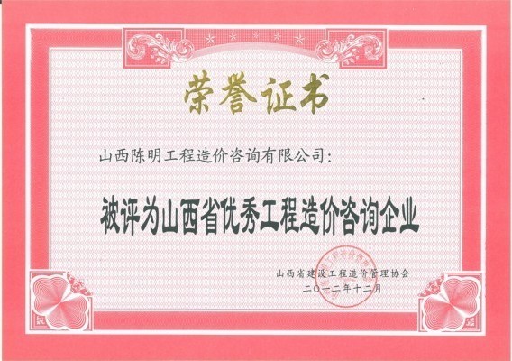 山西省優(yōu)秀工程造價(jià)