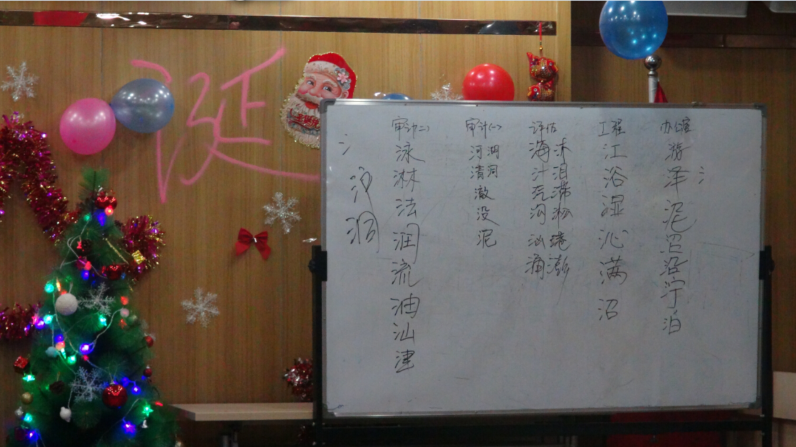 今年的平安夜活動比起往屆,增添了許多亮點(diǎn)。此次聯(lián)歡的節(jié)目內(nèi)容形式多樣、豐富多彩。聯(lián)歡以張局長致辭開場,集體許愿將一片溫馨融洽的氣氛帶入了現(xiàn)場;集體熱身舞蹈更是讓大家感到了濃濃的節(jié)日氛圍;基建部的詩歌朗誦《我希望》讓大家經(jīng)受了一次思想的洗禮,審計(jì)一部動感十足的一曲《奔跑》更是深受大家的喜愛;審計(jì)二部《租個女友回家過年》恢諧生動的表演引來一陣又一陣的笑聲;評估部精彩的《舞蹈大串燒》更是讓大家忍不住集體點(diǎn)贊;緊張又刺激的腦筋急轉(zhuǎn)彎、踩氣球、猜字謎、削蘋果等游戲,一次次的將晚會氣氛推向高潮。掌聲和歡呼聲此起彼伏,臺上臺下成了一片激情四溢的海洋。辦公室、財務(wù)部、文化部的詩歌朗誦《相信未來》之后,全體家人熱情合唱了司歌《我相信》,表達(dá)了大家對公司的深深的情懷和對未來無限的希望。