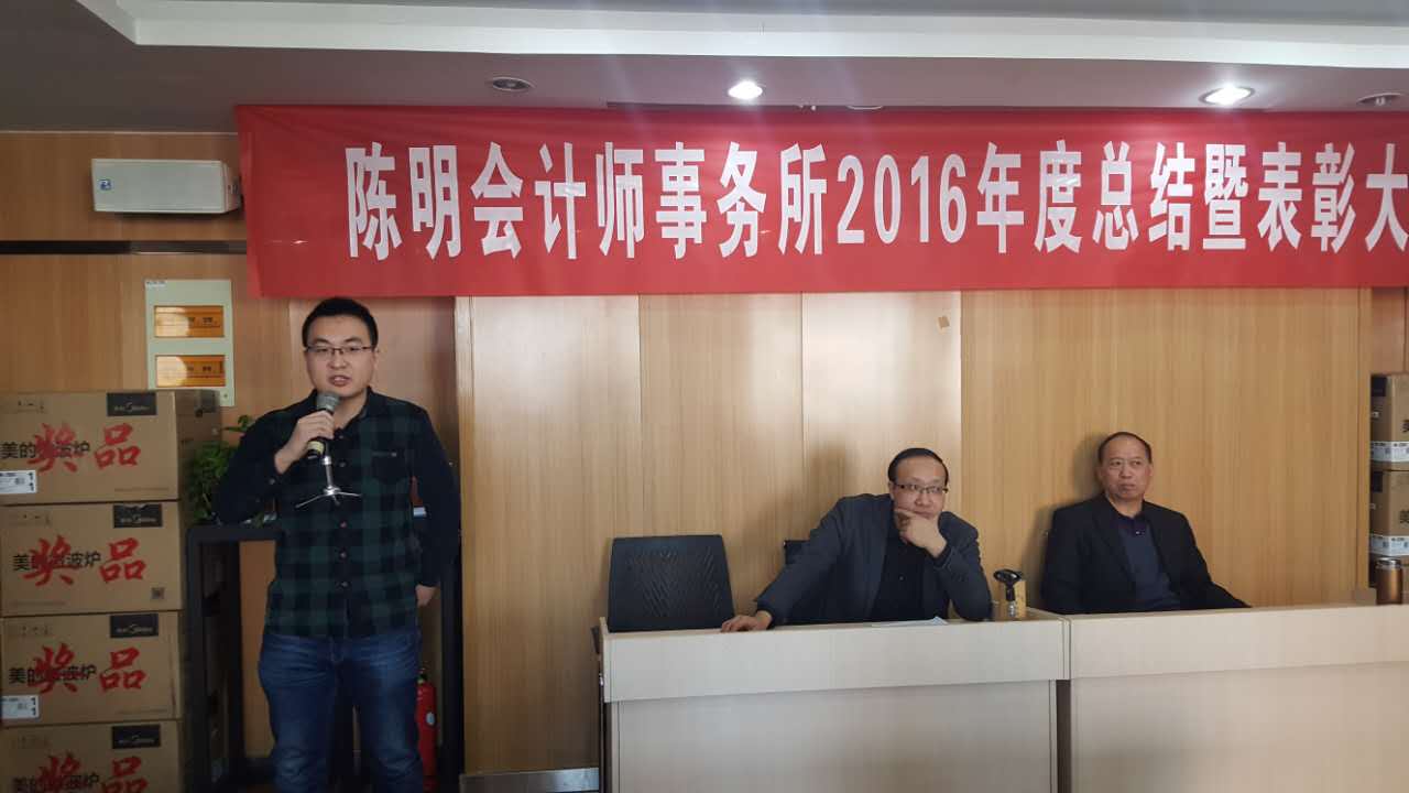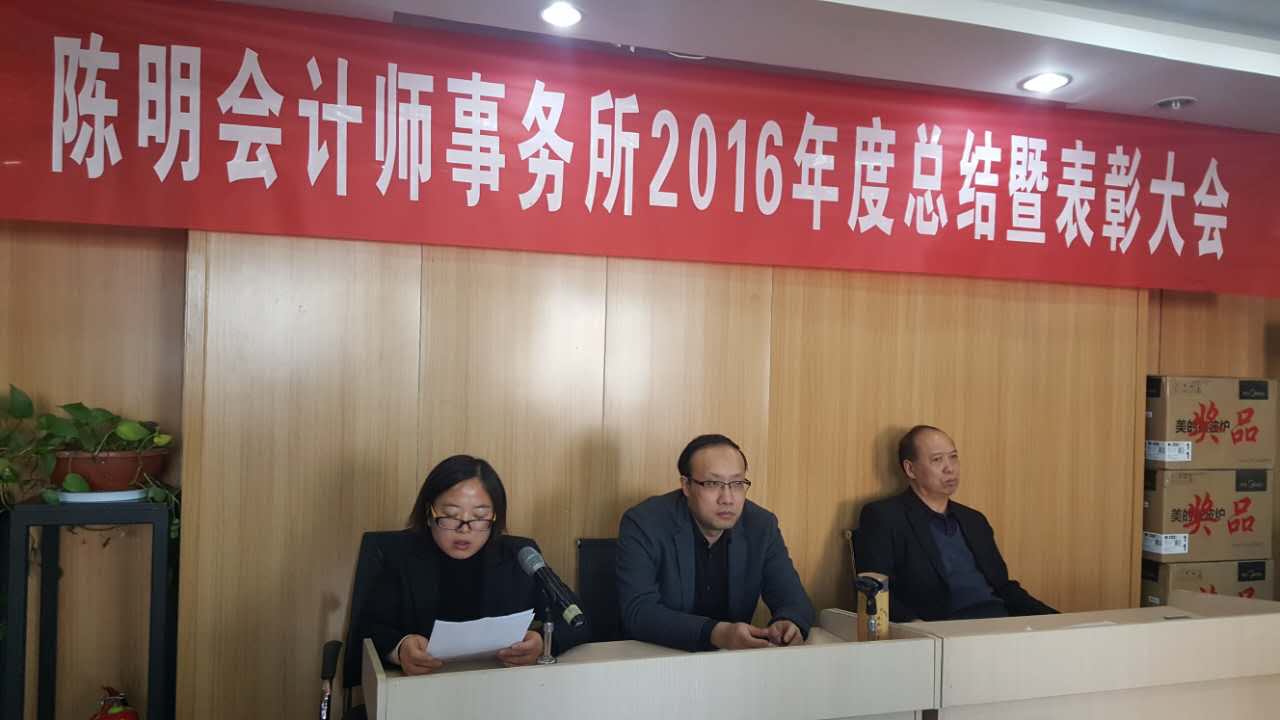 2月11日上午,陳明會計師事務(wù)所全體員工在會議室隆重召開公司2016年度工作總結(jié)暨表彰大會,大會由史志忠經(jīng)理主持。